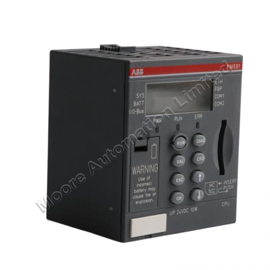 It is compatible with ABB PM5xx series I/O modules and expansion devices.