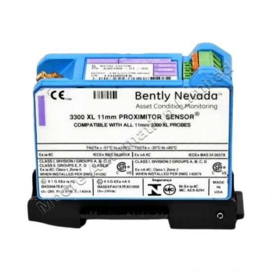 The 330780-51-05 3300 XL 11 mm Proximitor Sensor has the same advanced features found in the 3300 XL 8mm Proximitor Sensor. Its thin design allows it to be mounted in either a high-density DIN-rail installation or a more traditional panel mount configuration.